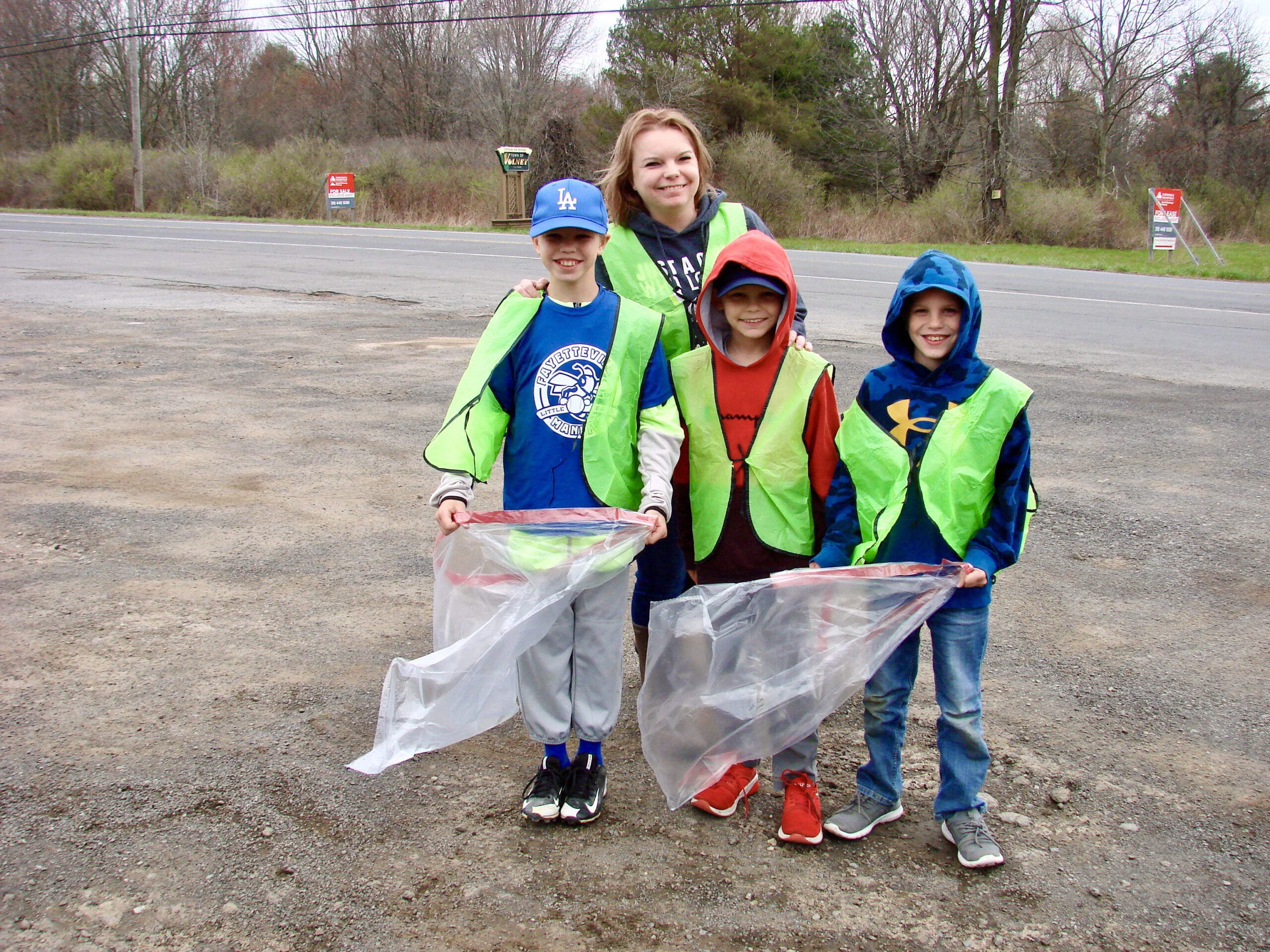 Stepanie Rando with sons, L-R: Kylar, Lucas, and Andrew prepare for litter pick up.