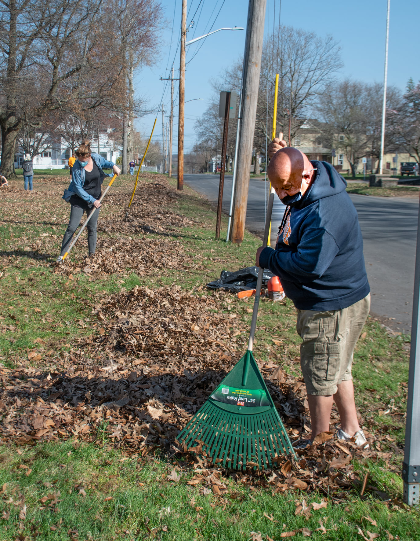 Members of the Fulton Lions Club, Deana Michaels, City of Fulton mayor and Lions member, other city officials, neighbors, and family members of late Fulton Lion Bob Weston gathered at Voorhees Park on Saturday, April 10, to rake leaves, clear brush and clean up trash. Fulton Lion Audrey Avery, who is also Fulton’s 5th Ward councilor, organized the event. Other Lions who participated were Patrick Devendorf, Dave Garber and Steve Chirello. Above, Don Patrick, Jr., right, Fulton 3rd Ward councilor, and Mayor Michaels joined the 30 volunteers for the park cleanup. The Fulton Lions Club, sponsors of the April 25 Lions Loot drawing, provides financial assistance for those in need of eyeglasses, eye exams, and hearing aids to residents in the Greater Fulton area. For more information, visit www.fultonlionsclub.com, or find them on Facebook under Fulton, NY Lions. Photo Credit: iHeartOswego