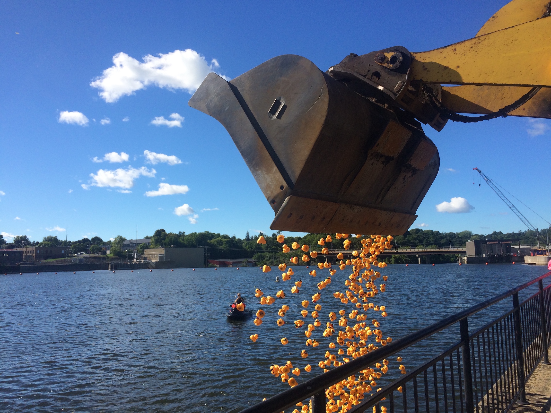A payloader full of ducks will race to the finish line in the Fulton Lions Club Charby’s Duck Derby. This is the derby’s 30th year. First prize is $2,500 and the event runs from Noon to 5 p.m., Sept. 13.