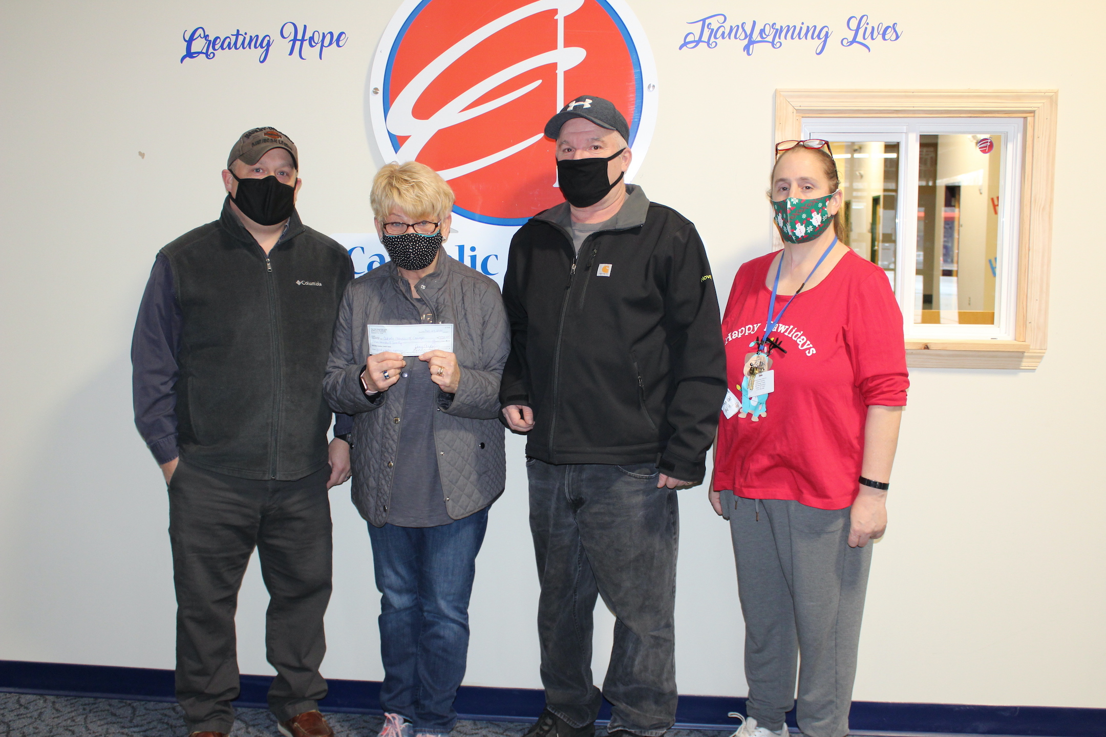 Fulton Moose Lodge #1280 recently made a holiday donation of more than $400 to Catholic Charities of Oswego County, (CCOC). Making the presentation from the Moose Club were, from left, are Jamie Johnson Sr., Renee Goss and Steve Glibert; with Mary-Margaret Pekow, CCOC executive director. For more information on supporting CCOC, contact Catholic Charities of Oswego County at 315-598-3980. For more information on CCOC, visit https://ccoswego.com or find them on Facebook.