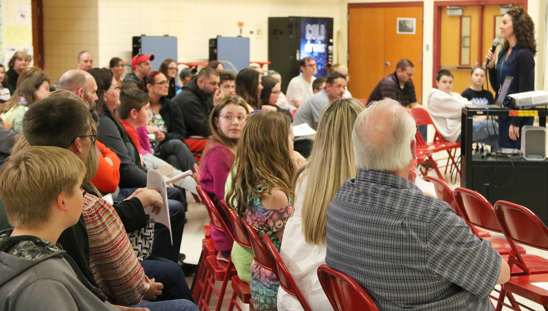 Families of Fulton City School District sixth graders visit the Fulton Junior High School during the recent transition night to inform the incoming seventh graders and their families about what to expect in middle school.