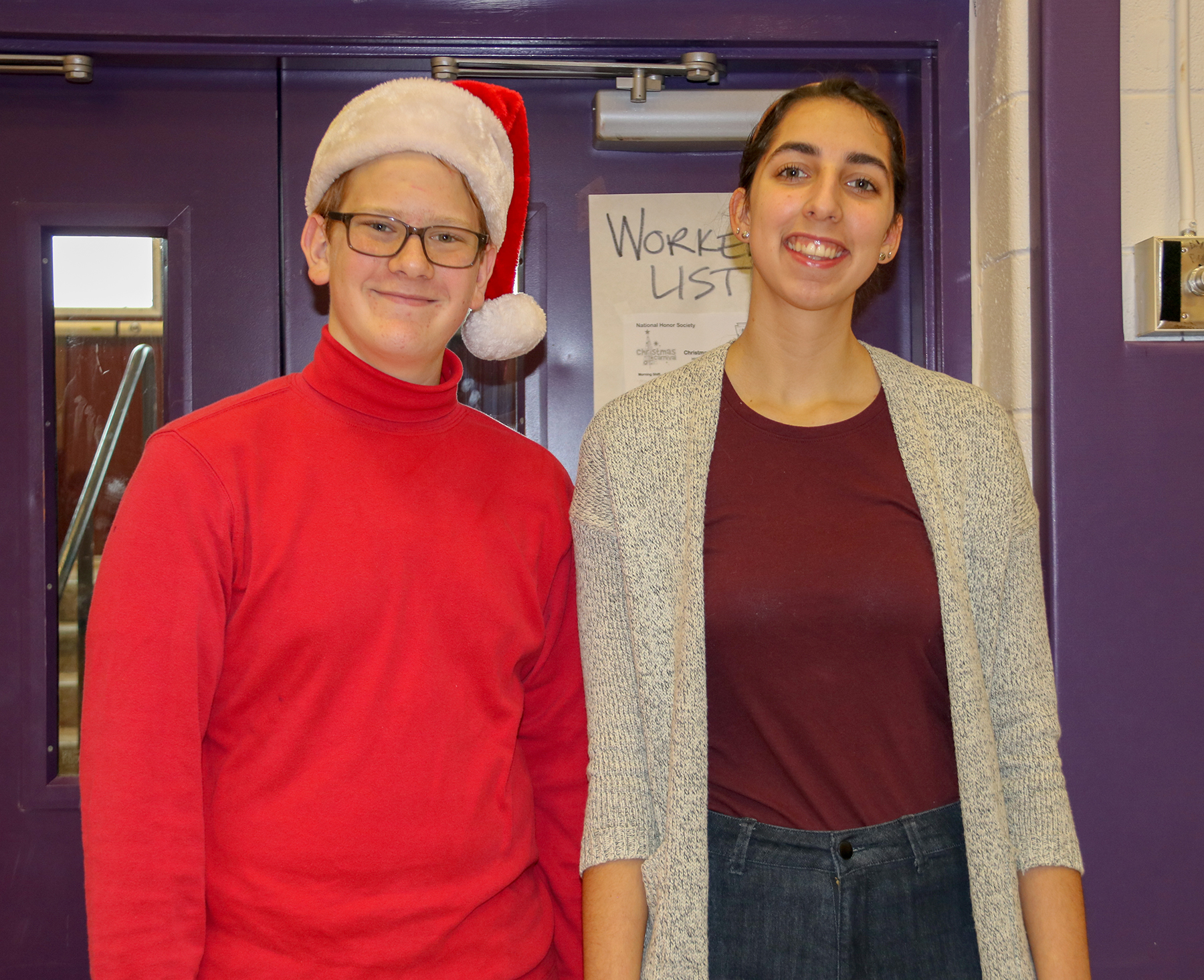 Students Marc Fellows and Velvet Howland are all smiles as they volunteer their time working at the annual Christmas Bureau Carnival.