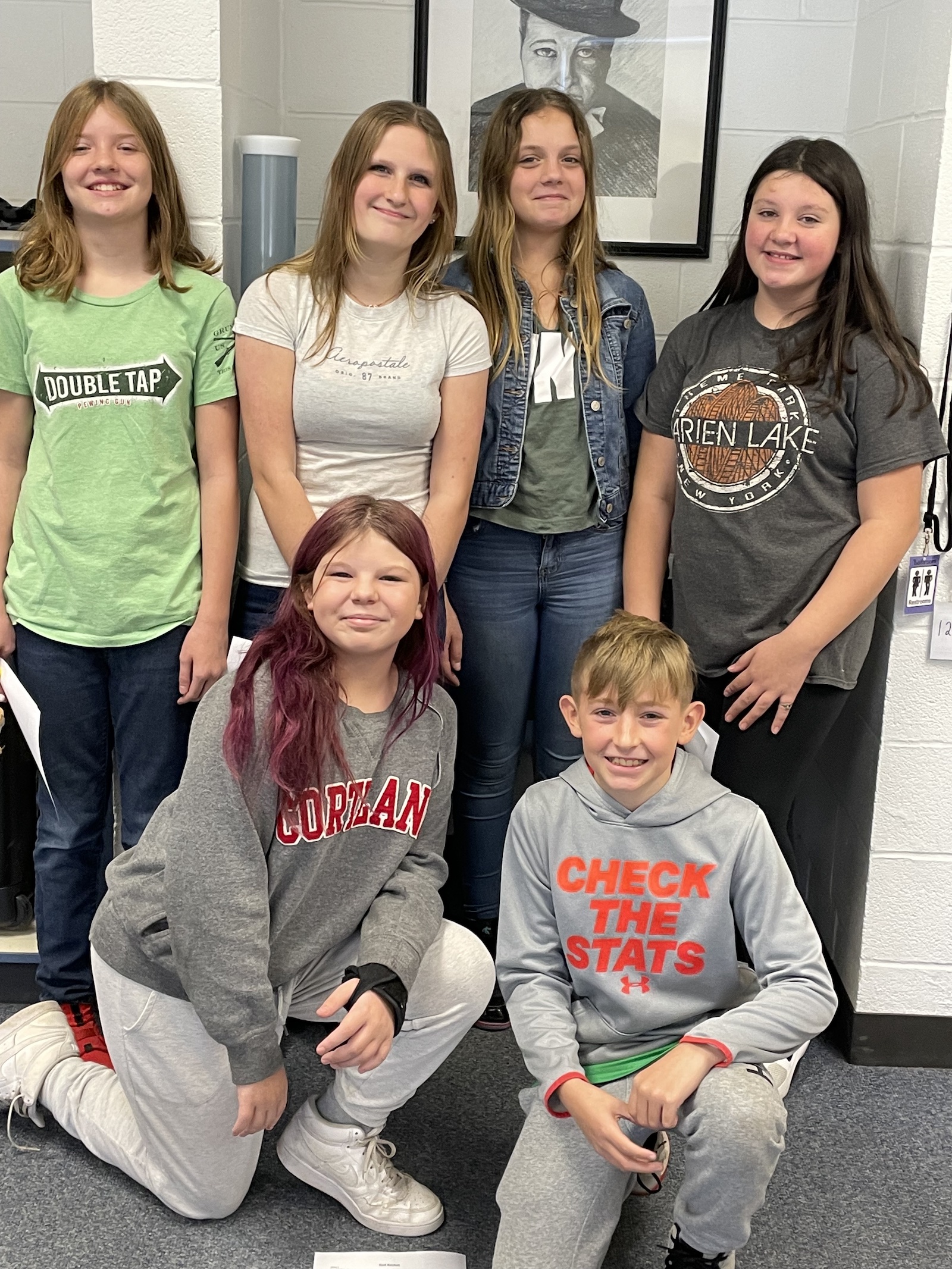 Back row, from left, Hannibal sixth-grade vocalists Emileigh Walts, Elle Woolworth, Destany Bryan and Phoenix Leonardo. In front, from left, are Alice Thompson and Garrett Green.