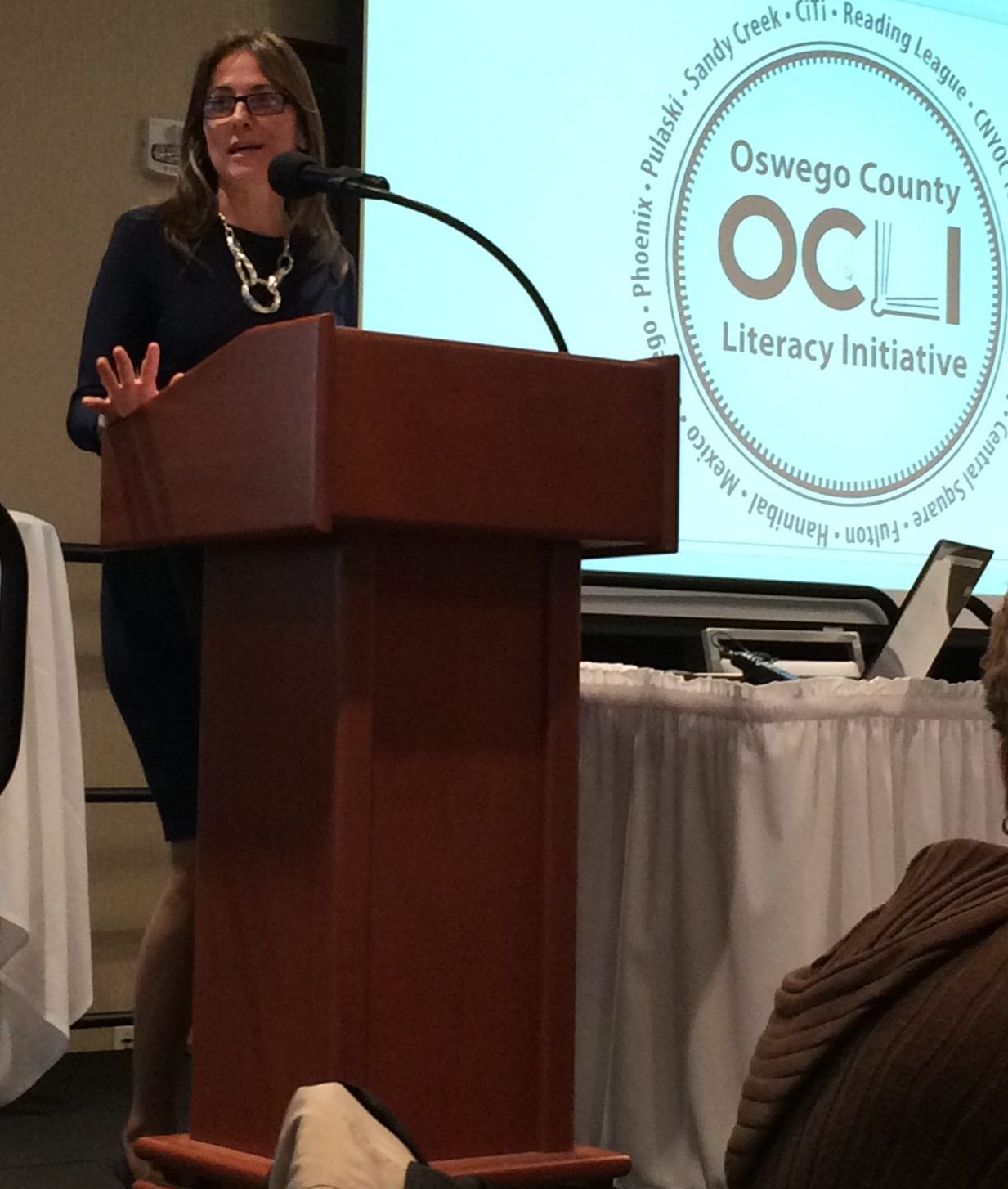 CiTi Executive Director of Regional Success Bonnie Finnerty welcomes the group of Oswego County educators to a fall Oswego County Literacy Initiative training.