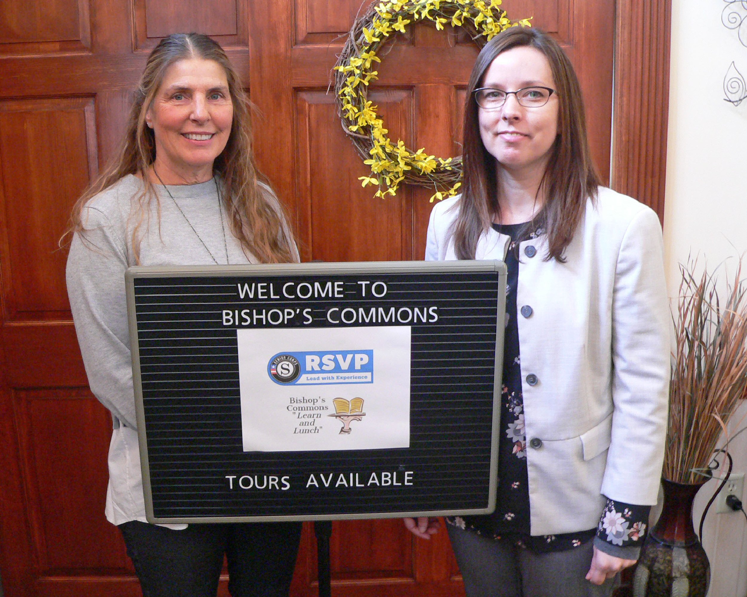 November’s “Learn and Lunch” at Bishop’s Commons features the Retired and Senior Volunteer Program. From left: Cheryl Cullinan of Bishop’s Commons, with RSVP Program Director Samantha Cleveland. Cleveland will talk about the multitude of programs and volunteer opportunities for people 55 years or older in our community, facilitated through RSVP.