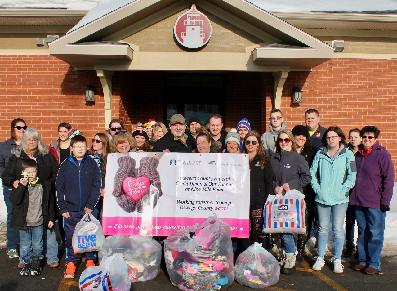 Oswego County Federal Credit Union (OCFCU), announced the fourth annual “Gloves with Love” program to collect new hats, mittens, gloves, and scarves for needy kids in Oswego County, said Bill Carhart, CEO. OCFCU has again partnered with Exelon Generation to launch the “Gloves with Love” program from December 7, 2018 through January 4, 2019. Baskets will be placed at each OCFCU branch and at Nine Mile Point. Slightly used or new adult hats and winter scarves will also be collected. The above photo shows employees from OCFCU and Exelon Generation just before they distributed items from the last Gloves with Love event. For more information, contact Mary Greeney, OCFCU vice president, member services, at 315-343–7822.