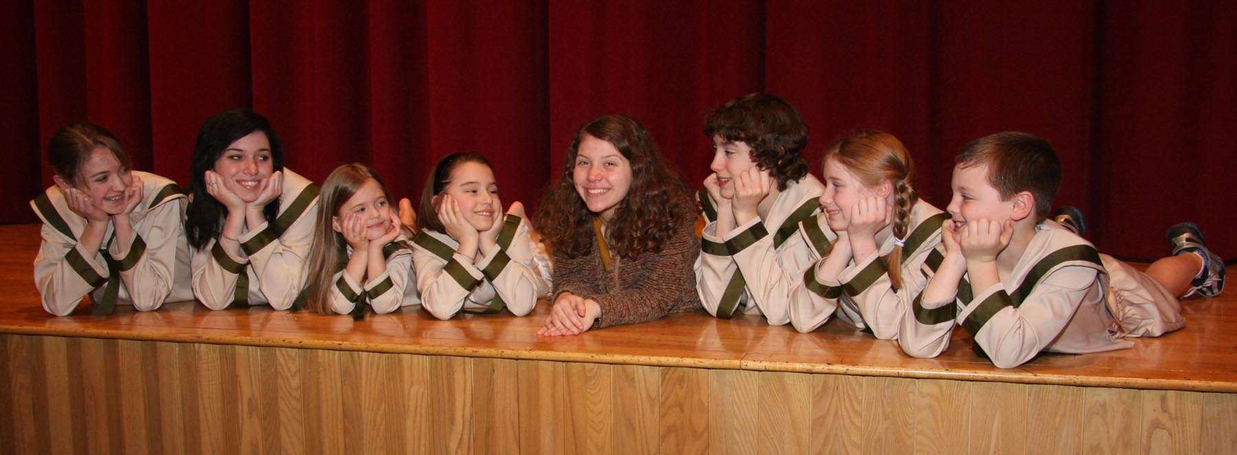 Maria and the children enjoy a moment together in a scene from Quirk’s Players’ upcoming production of Rodgers & Hammerstein’s The Sound of Music. Pictured here are (l to r): Katelyn Caza, Kerri Knopp, Abigail Mainville, Julie Duval, Clare Bawarski, Mitchell Lalik, Victoria Eckhard and Macean MacIntyre. The production is under the direction of Tom Briggs and will be presented March 4-5-6 at G. Ray Bodley High School.