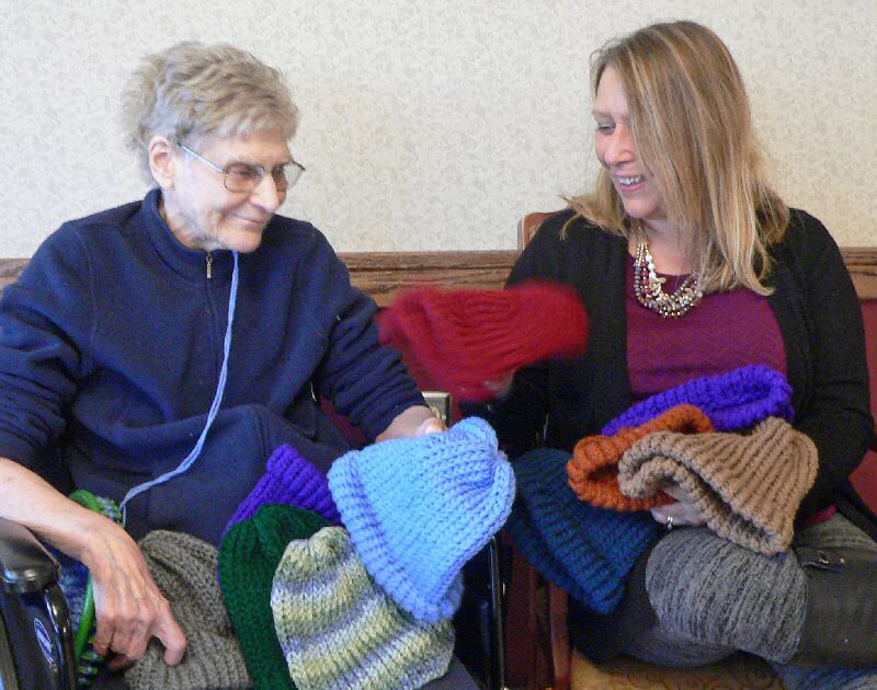 Photo 2 – St. Luke Resident Stephaine with Daun Whittaker Victory Transforamtion Knitting Hats For The Homeless 1-19LR