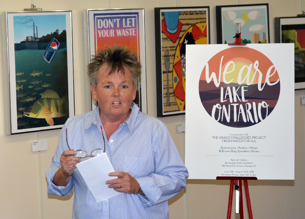 Amy Bartell, SUNY Oswego coordinator of community exhibitions, speaks last summer about the college’s then-new Grand Challenges Project: Fresh Water for All. A new “We Are Lake Ontario” exhibition running May 23 through Sept. 6 at Oswego State Downtown will display the artwork and creative writing of some 60 students, focusing on shared responsibility for protecting Lake Ontario for use and enjoyment.