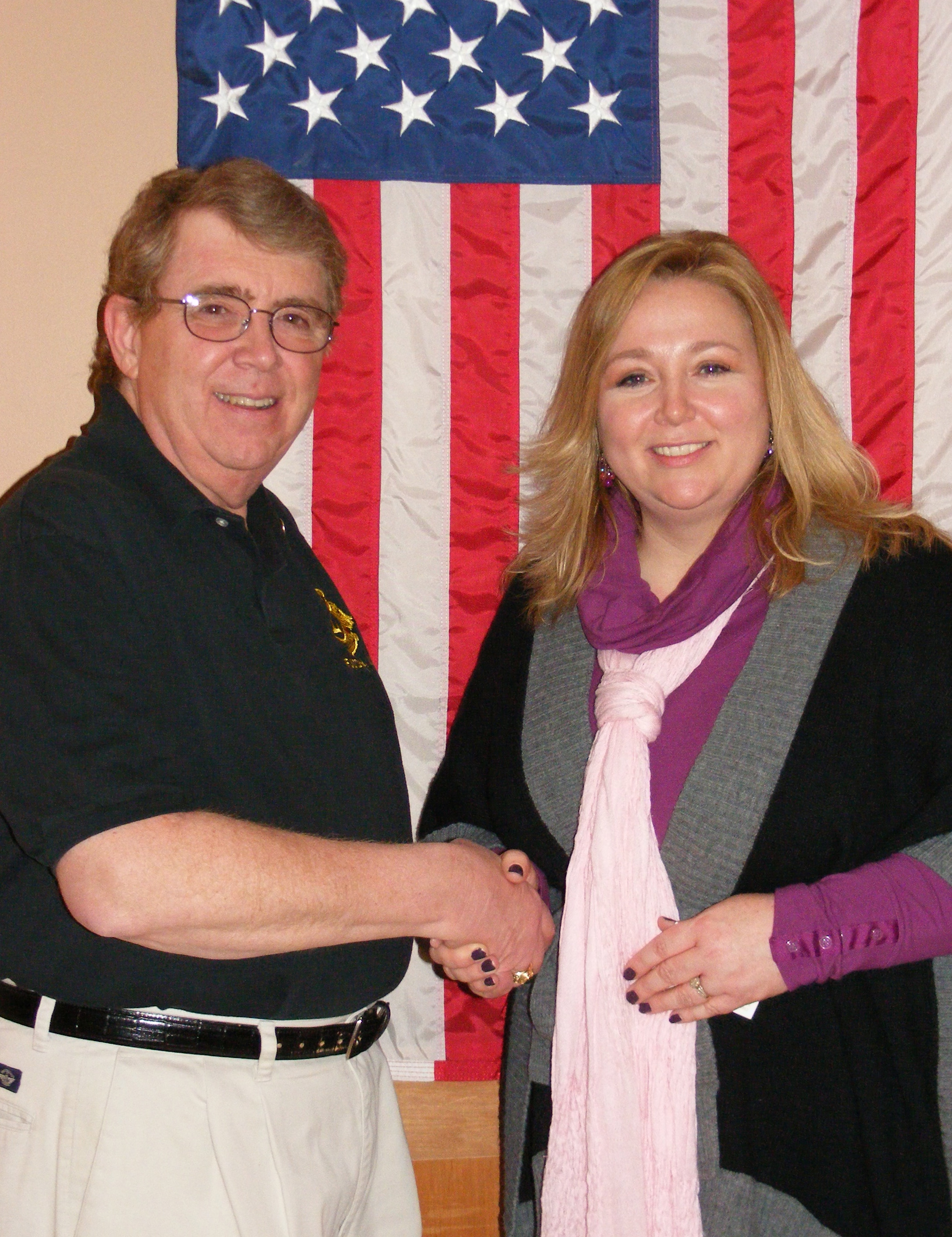 Karrie Damm, executive director of the Child Advocacy Center of Oswego County (CAC), was the guest speaker at the April 26 Fulton Lions Club meeting. James Sokolowski, Fulton club president, (above) thanks Damm for her presentation. The CAC is a safe, child-friendly site for the investigation, prosecution and treatment of child abuse. Damm gave an overview of the CACs services. She also said that if anyone suspects that a child has been physically, sexually, or emotionally abused or neglected that they should report it immediately. They can call local law enforcement at 911, or the 24-hr. NY State Hotline at (800)- 342-3720. Further information on CAC is available at www.oswegocac.org or (315) 592-4453. Lions clubs are committed to sight and hearing preservation. The Fulton Lions Club, also know for their Palm Sunday Pancake Breakfast, Lions Loot Sweepstakes and Labor Day Duck Derby, provides financial assistance for those in need of eyeglasses, eye exams and hearing aids to residents in the Greater Fulton area. For further information on Fulton Lions, visit www.FultonLionsClub.org