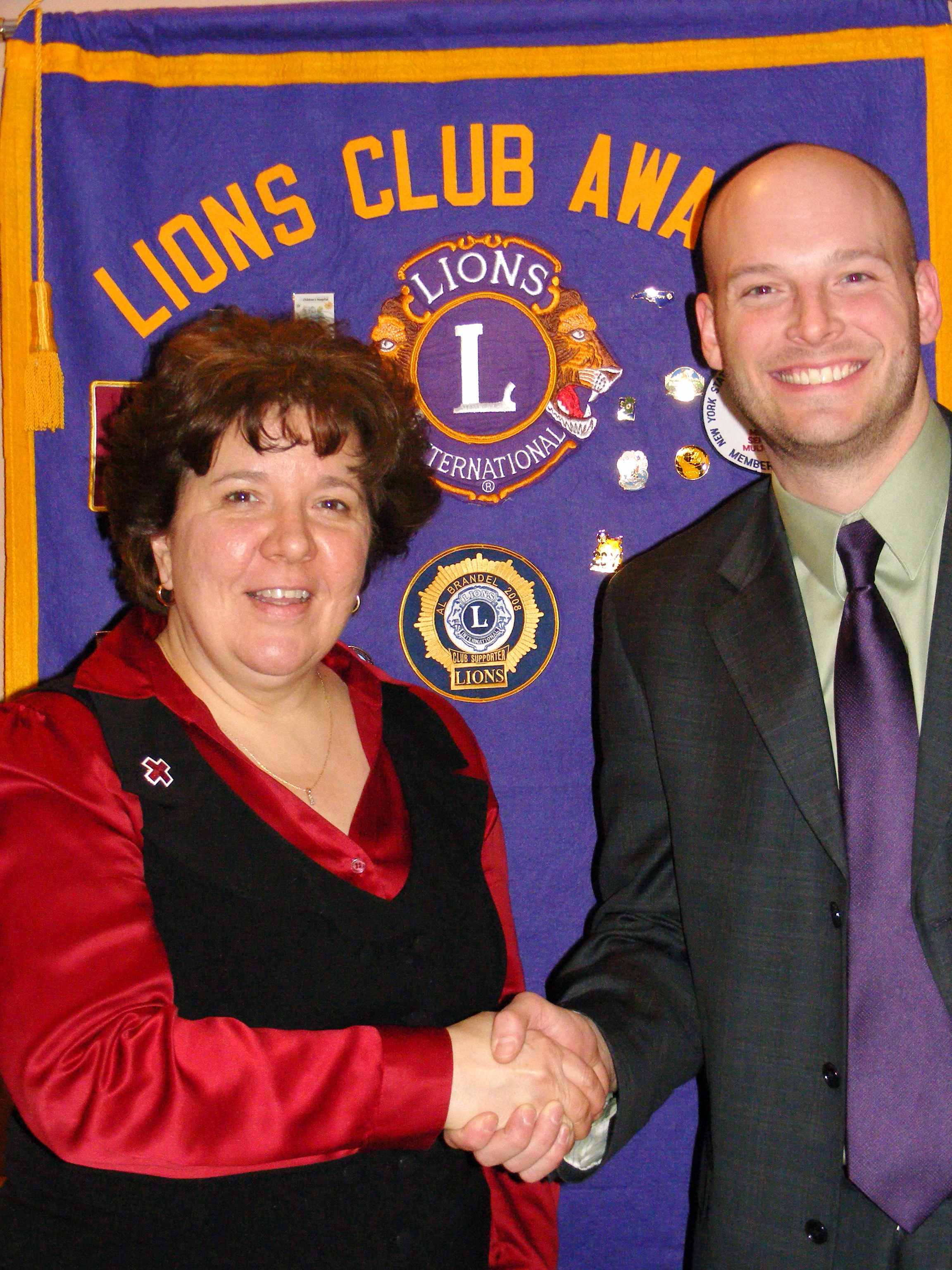 Karen Ferguson, (left), Oswego branch director for the American Red Cross, was guest speaker at the Fulton Lions Club Jan. 27 meeting. Ferguson explained local fundraising efforts, the many services provided by the Red Cross, and how people can volunteer to help. The Fulton club is one of the largest and most active in their district. Lions clubs are committed to sight and hearing preservation. The Fulton Lions Club, also know for their Lions Loot Sweepstakes and Labor Day Duck Derby, provides financial assistance for those in need of eyeglasses, eye exams and hearing aids to residents in the Greater Fulton area. For further information on Fulton Lions, visit www.FultonLionsClub.org.