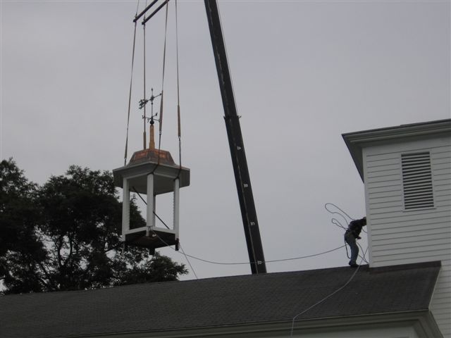 A crane raises the new bell tower above Bristol Hill Church. Photo submitted by Norman “Jay” Foster.