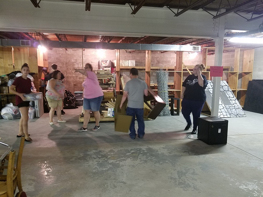 Volunteers work together to place things in their correct location.