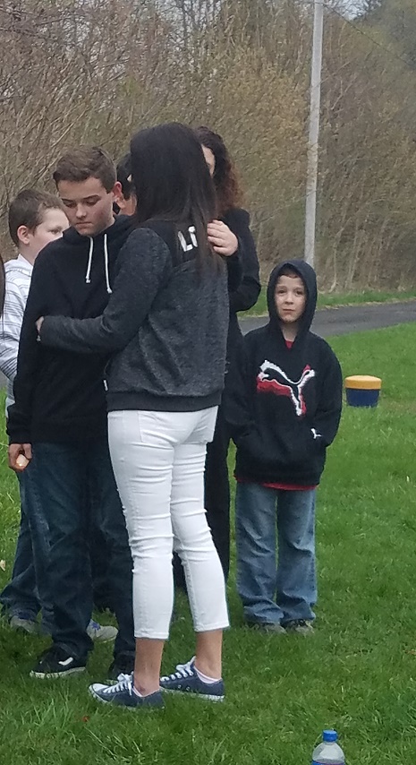 Neivel’s sister, Leaha Smith comforts Neivel’s 13-year-old son, Dylan.