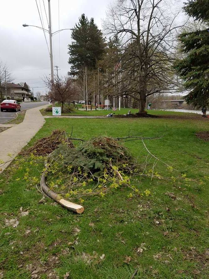 Overgrown branches and leaves are removed from Veterans Park.