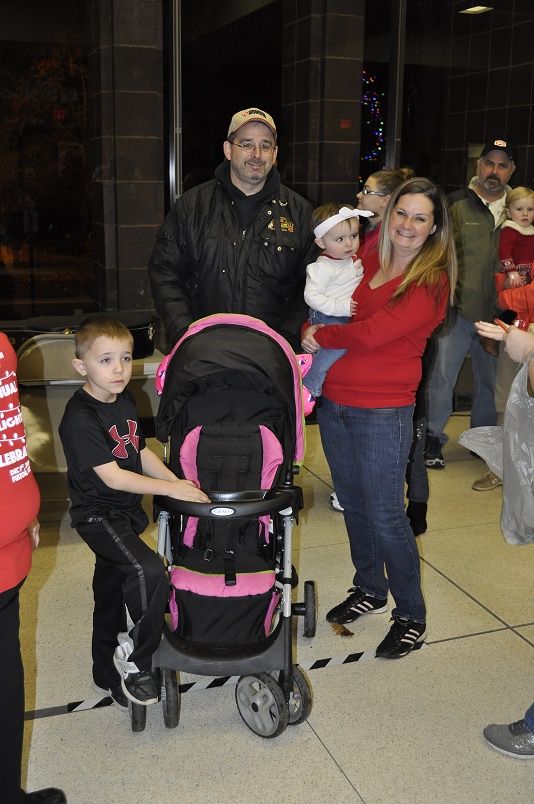 Rick Miller and his Fiance, Amie wait in line with their children to see Santa.