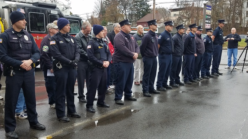 Members of Fulton Fire Department and Fulton Police Department attend the remembrance ceremony for two fallen Fulton firefighters.