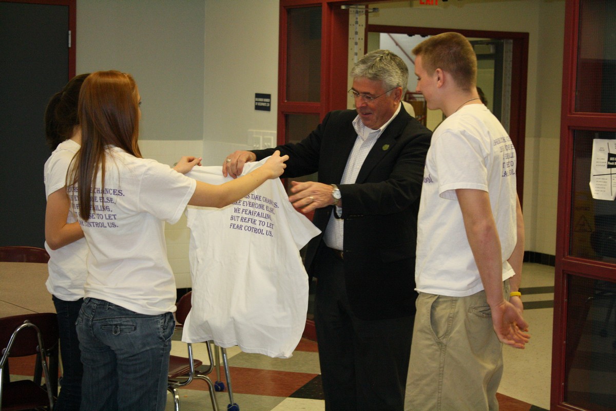 Aubertine receives an SOS t-shirt.