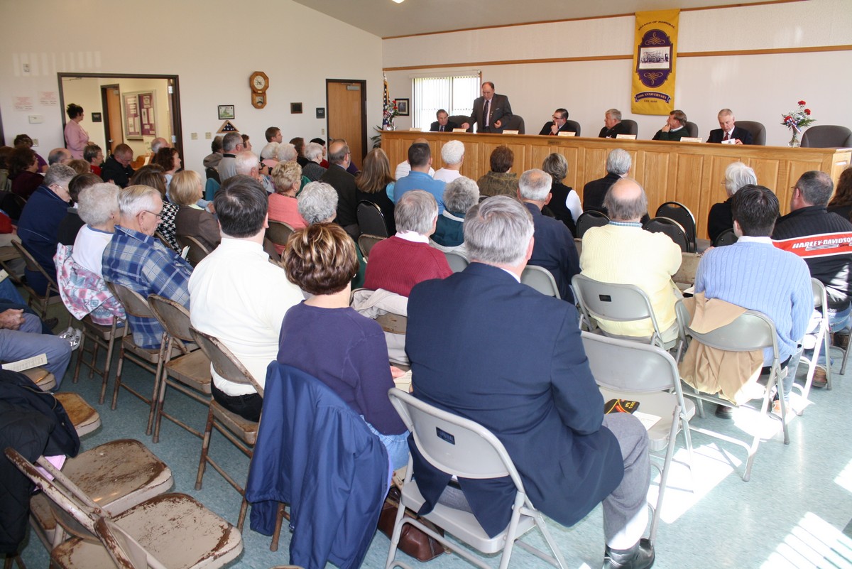 A large crowd filled the village and town hall meeting room for the sesquicentennial celebration.