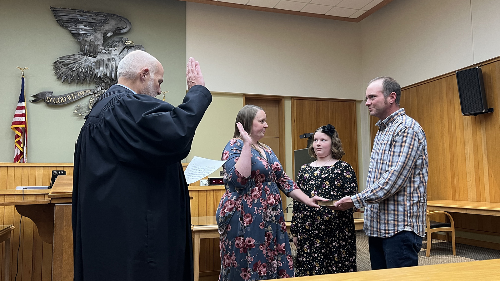 Judge Hawthorne swears in Jo Smith as Deputy City Clerk. Photo by Kassadee Bradshaw.
