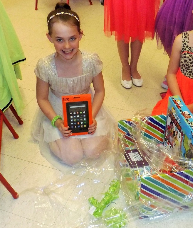 Fourth grader, Abigail Miner won a donated door prize basket with a Kindle inside.