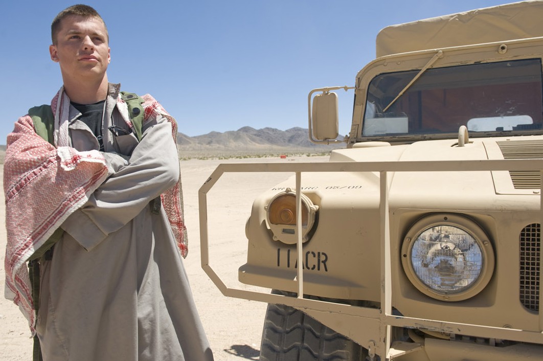 Army Pvt. Talon J. Sotherden, National Training Center, Calif., plays the role of an Iraqi national during a training exercise. He is one of many people used as role players to give deploying units some of the most realistic deployment training the U.S. military has to offer. (Photo by Staff Sgt. Christopher Griffin)
