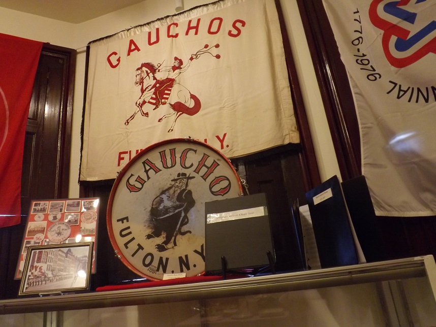 Flags, information, and former Gaucho instruments are seen on display.