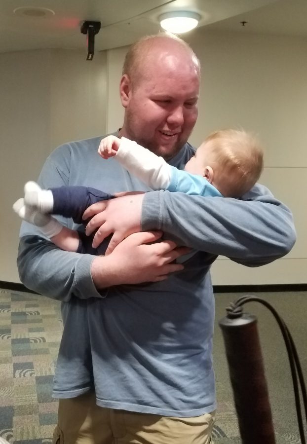 Tim is greeted by his nephew, Griffin.