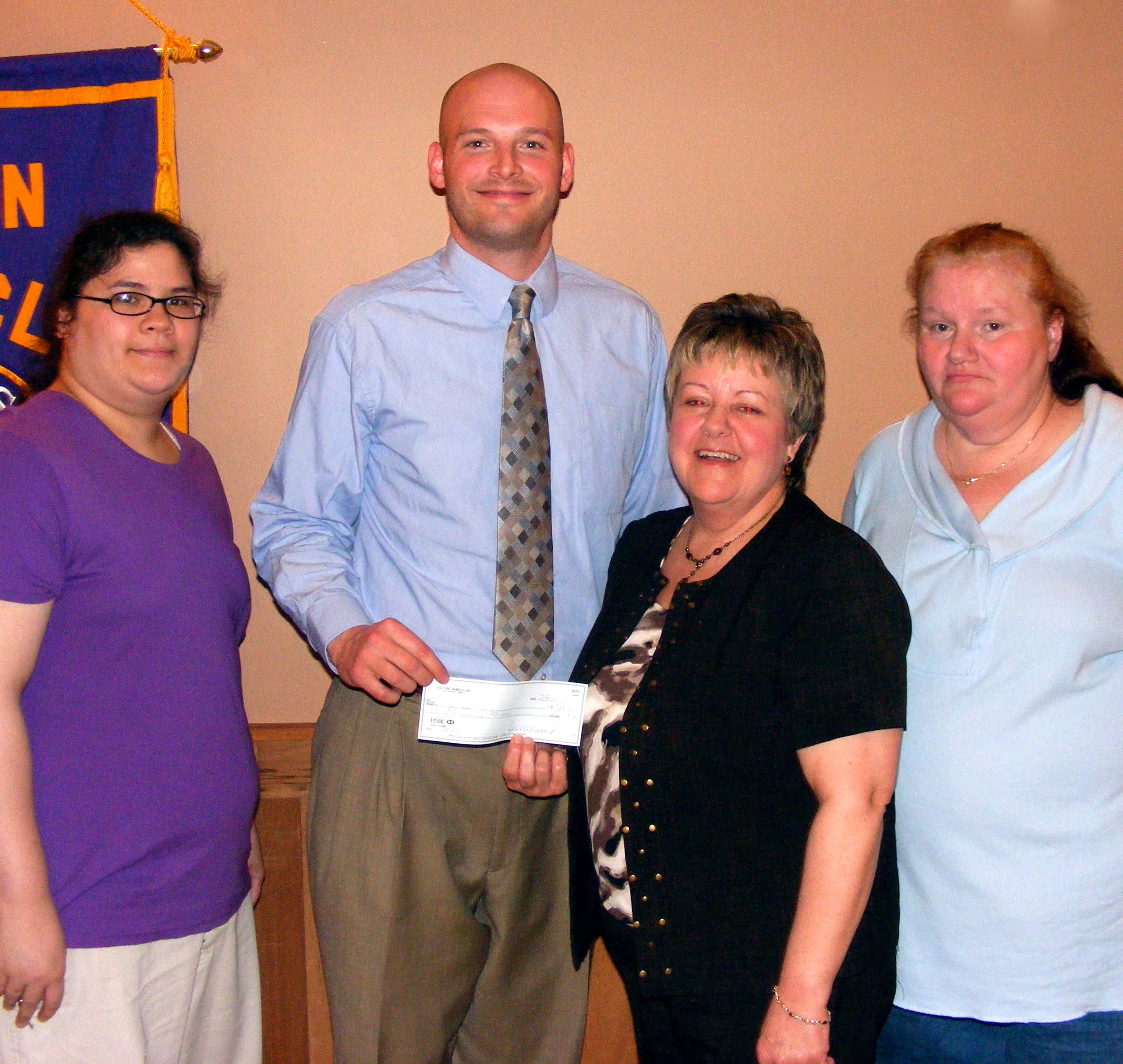 Jane Murphy, executive director of Literacy Volunteers of Oswego County (LVOC) was the featured speaker at the May 12 meeting of the Fulton Lions Club. LVOC is dedicated to helping the 17,000 adults in Oswego County who are unable to read above a 5th grade level with reading, financial and computer literacy. Here Murphy, (center), accepts a donation from Fulton Lions Club President Fred Aldrich. Flanking them are LVOC learners Caroline Aguzar (left) and Shirley Slate, who also spoke at the meeting about how LVOC has helped improve their lives and strengthen their mother-daughter bond. The Fulton club is one of the largest and most active in their district. Lions clubs are committed to sight and hearing preservation. The Fulton Lions Club, also know for their Lions Loot Sweepstakes and Labor Day Duck Derby, also provides financial assistance for those in need of eyeglasses, eye exams and hearing aids to residents in the Greater Fulton area. For further information on Fulton Lions, visit HYPERLINK “http://www.FultonLionsClub.org” www.FultonLionsClub.org. For more information on LVOC, Murphy can be contacted at [email protected], or visit www.lvoswego.org.