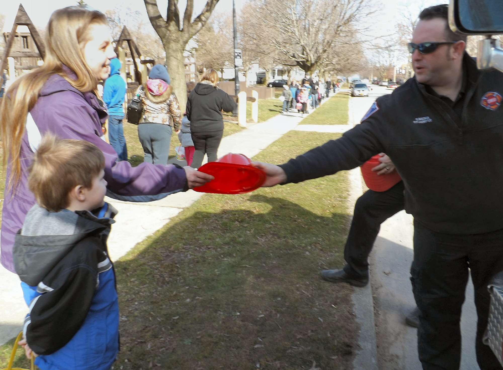 Members of the Oswego Fire Department handed out firefighter hats to many of the children.