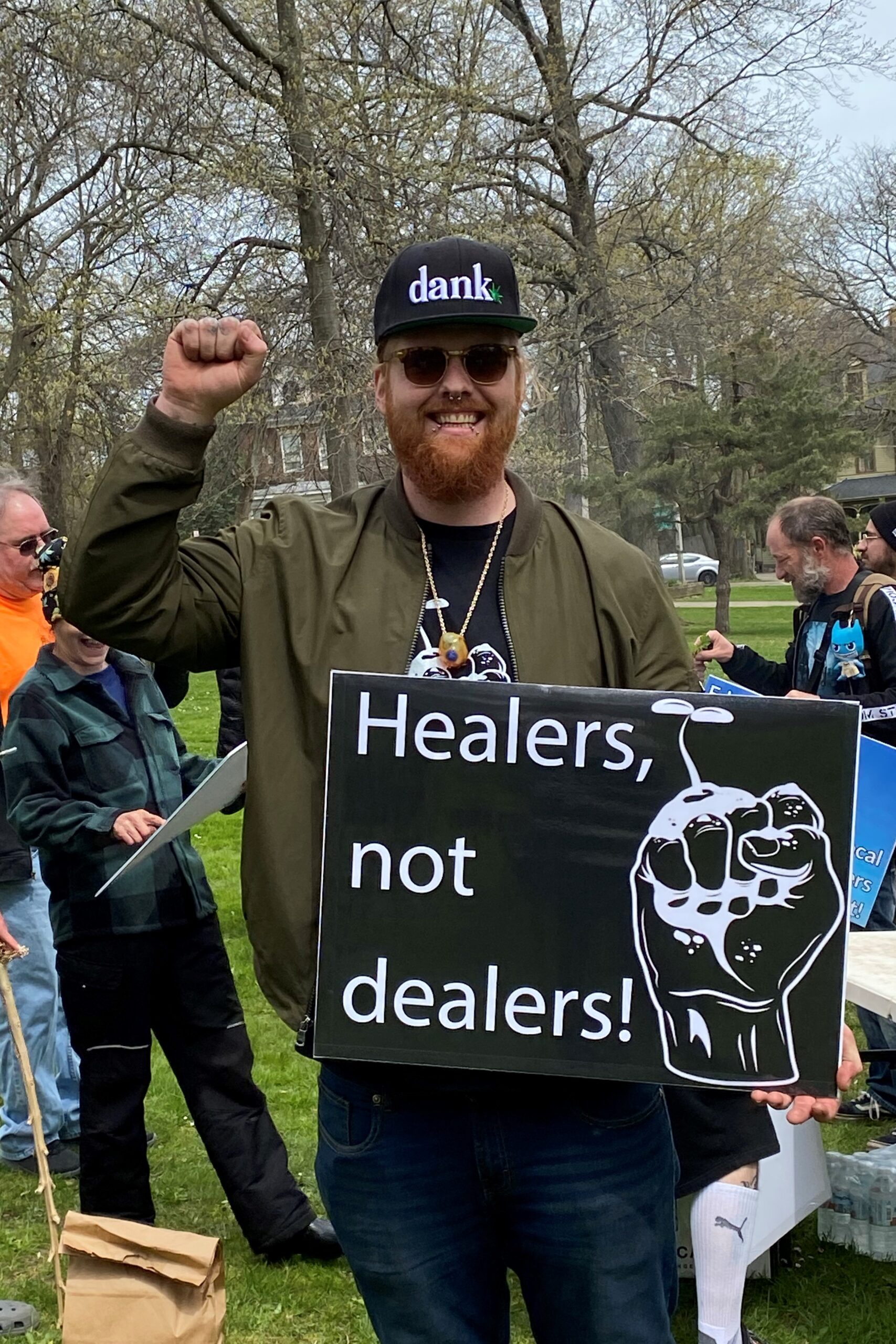 Joshua Waterman at Franklin Square Park rally. Photo by Shea O’Malley.