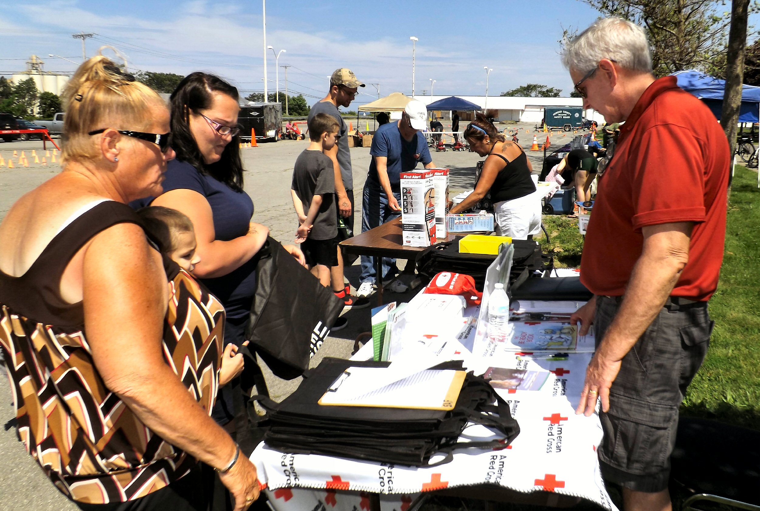 Gary Toth of the Red Cross shares some safety information with visitors at his booth. In the background, Jennifer Losurdo provides folks with information on the Youth Bureau.