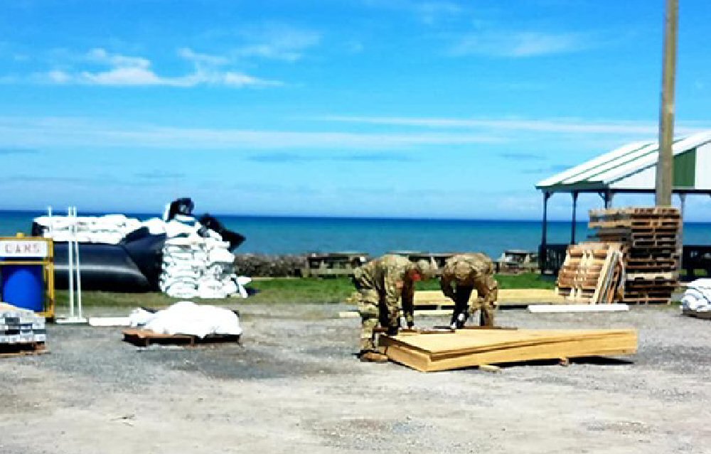 National Guardsmen work to prepare for possible flooding at The Loop in Oswego Town recently. (Photo by Joey Falcetti)
