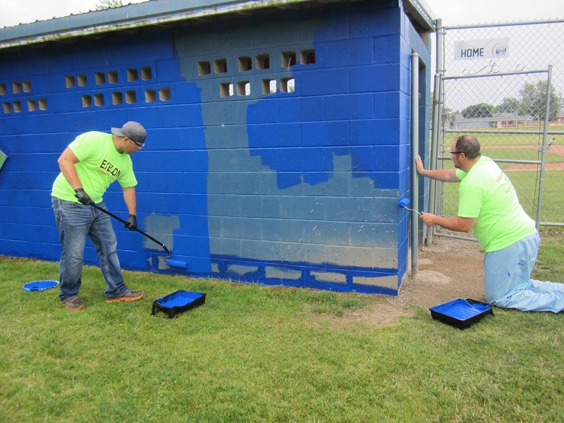 Exelon volunteers revamp the dugouts of Fort Ontario baseball fields.