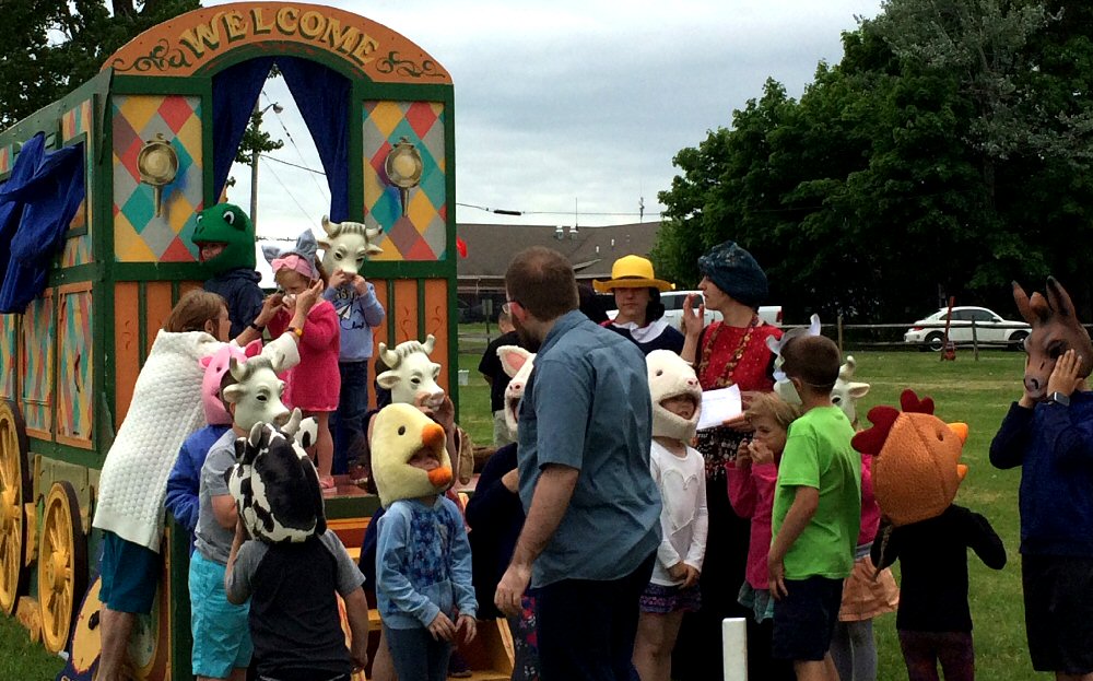 Marionette Magic will bring its gypsy wagon stage to the Madeline Festival June 1 at Fort Ontario. Pictured are children and characters getting ready to present the interactive children’s play “Madeline and the Gypsies” at last year’s festival.