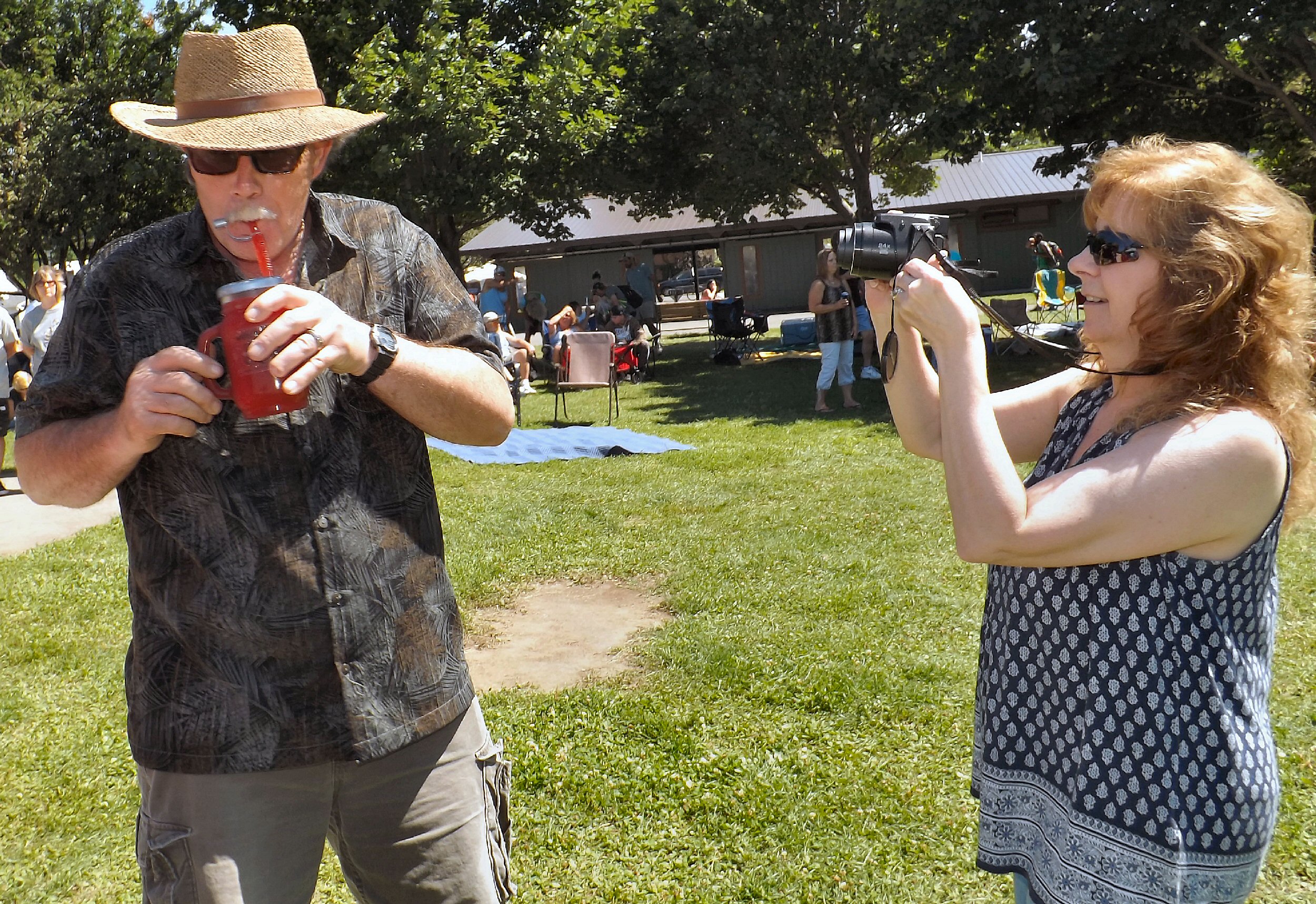 Diane Beshures snaps a photo of her brother, Danny Hall, as he samples one of the many beverages available at Harborfest