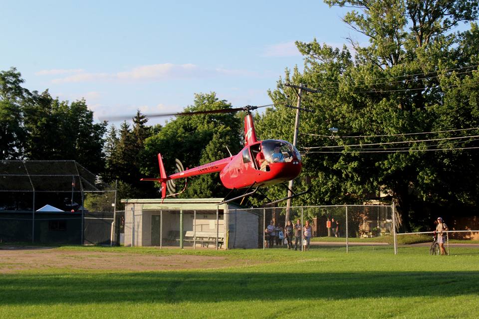 The helicopter takes off with more passengers