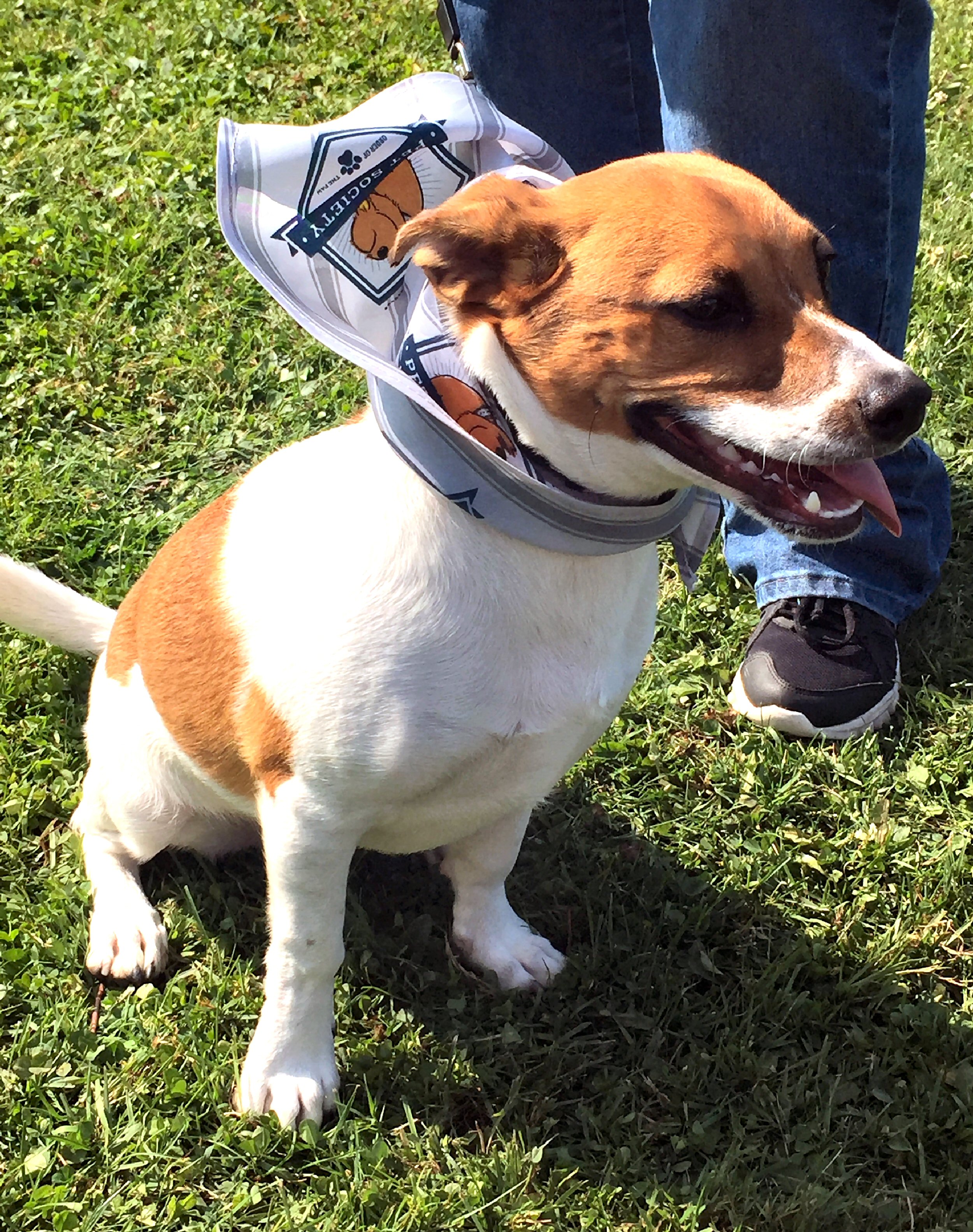 Lucy, a beagle mix takes a break from running around.
