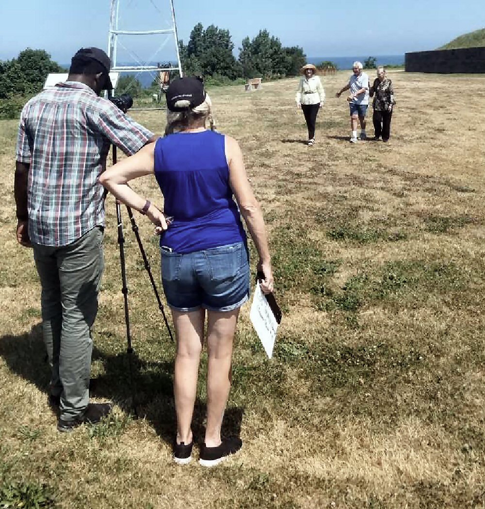 Screenwriter Juliet Giglio and student Mic-Anthony Hays during filming of “Only 982” at Fort Ontario State Historic Site in 2018.