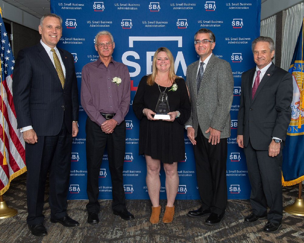 From left: James Conroy, NYBDC; David Bardeschewski; Bardy’s 4 Seasons Tire & Auto Repair, Inc.; Lisa Hall, Bardy’s 4 Seasons Tire & Auto Repair, Inc.; and Bernard J. Paprocki, SBA.