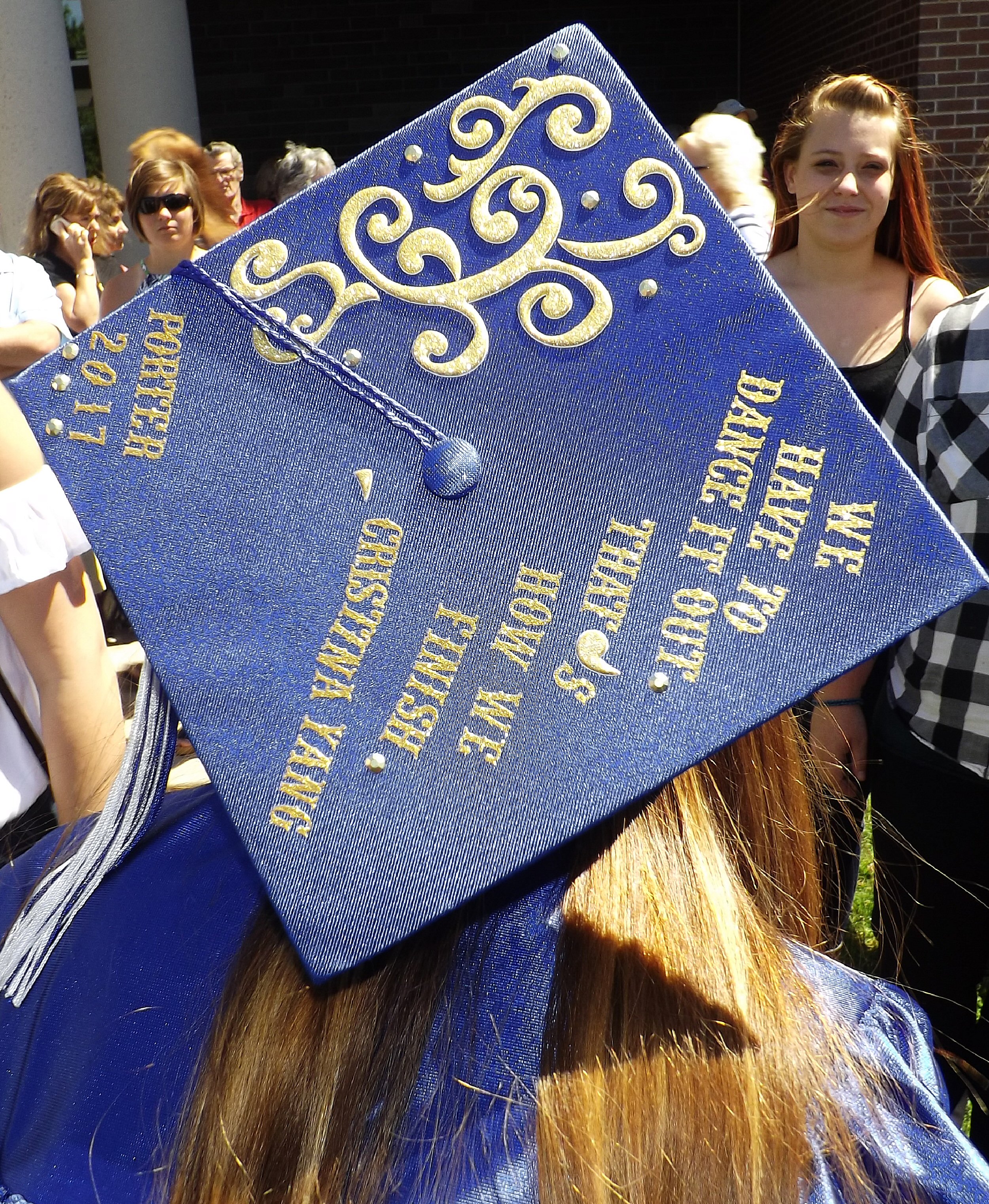 Graduate Samantha Porter was one of many who placed messages atop their caps.