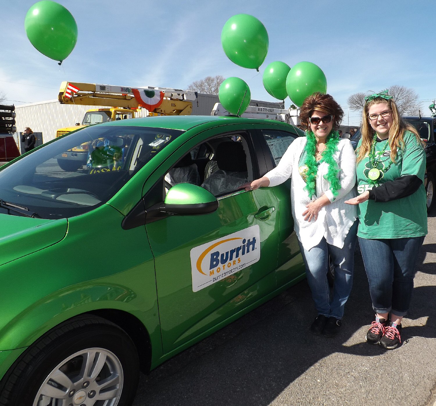 Missy Taylor and her daughter, Mikayla Taylor pose with a green car from Burritt’s. Mikayla is an office worker at the Oswego car dealership.