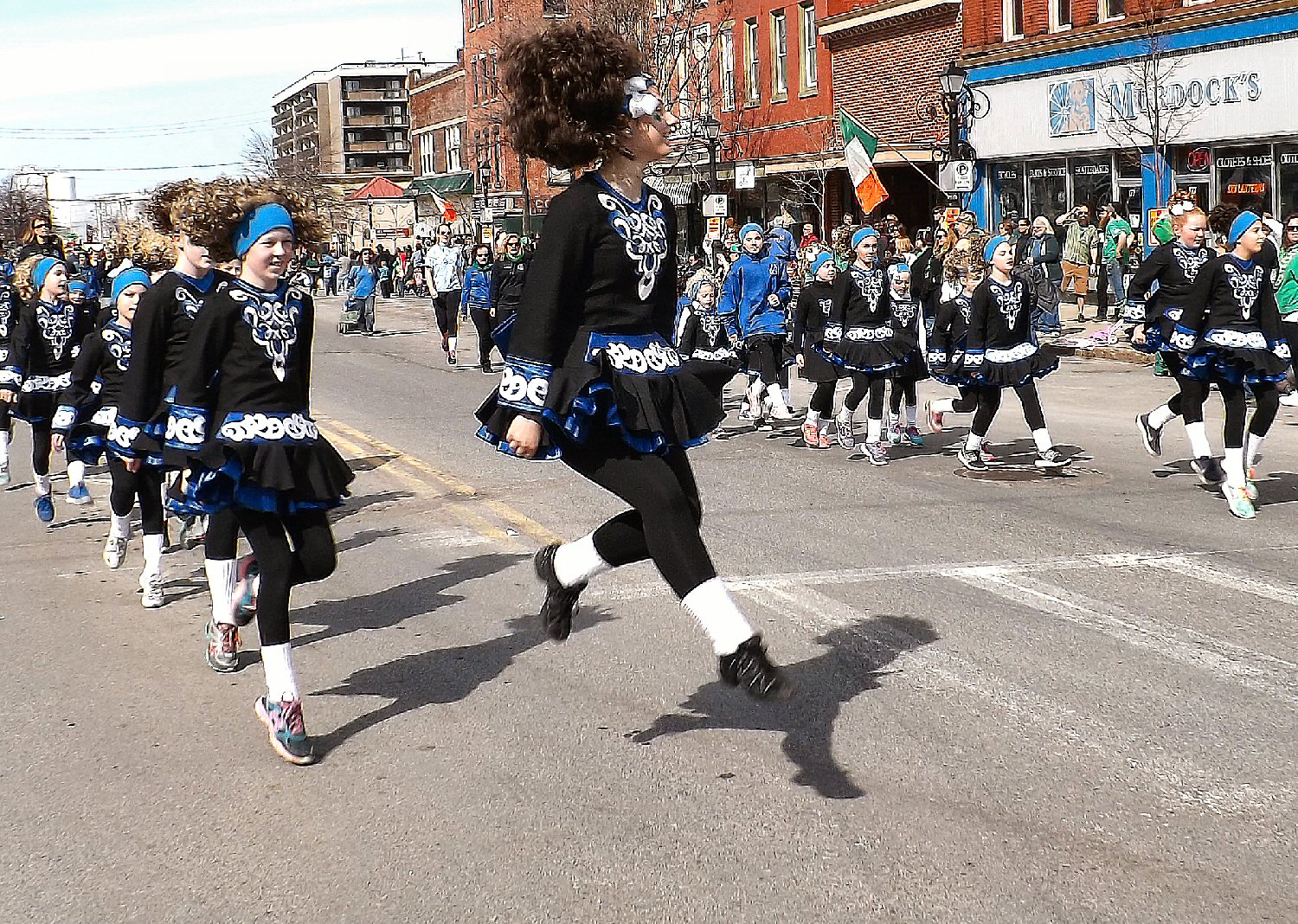 Students in the Kinlough Academy show off their Irish dance skills as they march up West First Street.