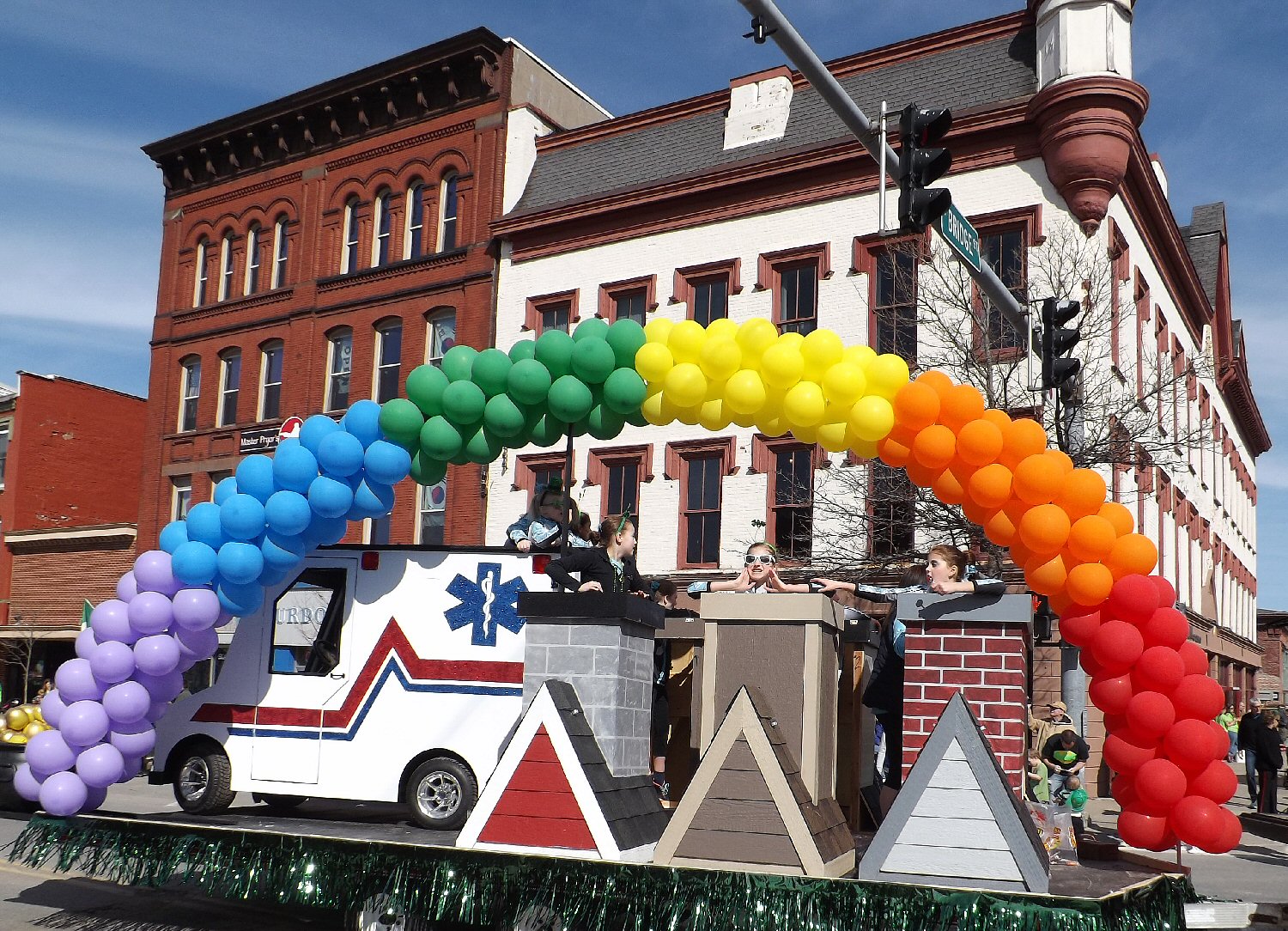 Some of Miss Kelly’s Dance Company wave to the crowd from their Irish-themed float.