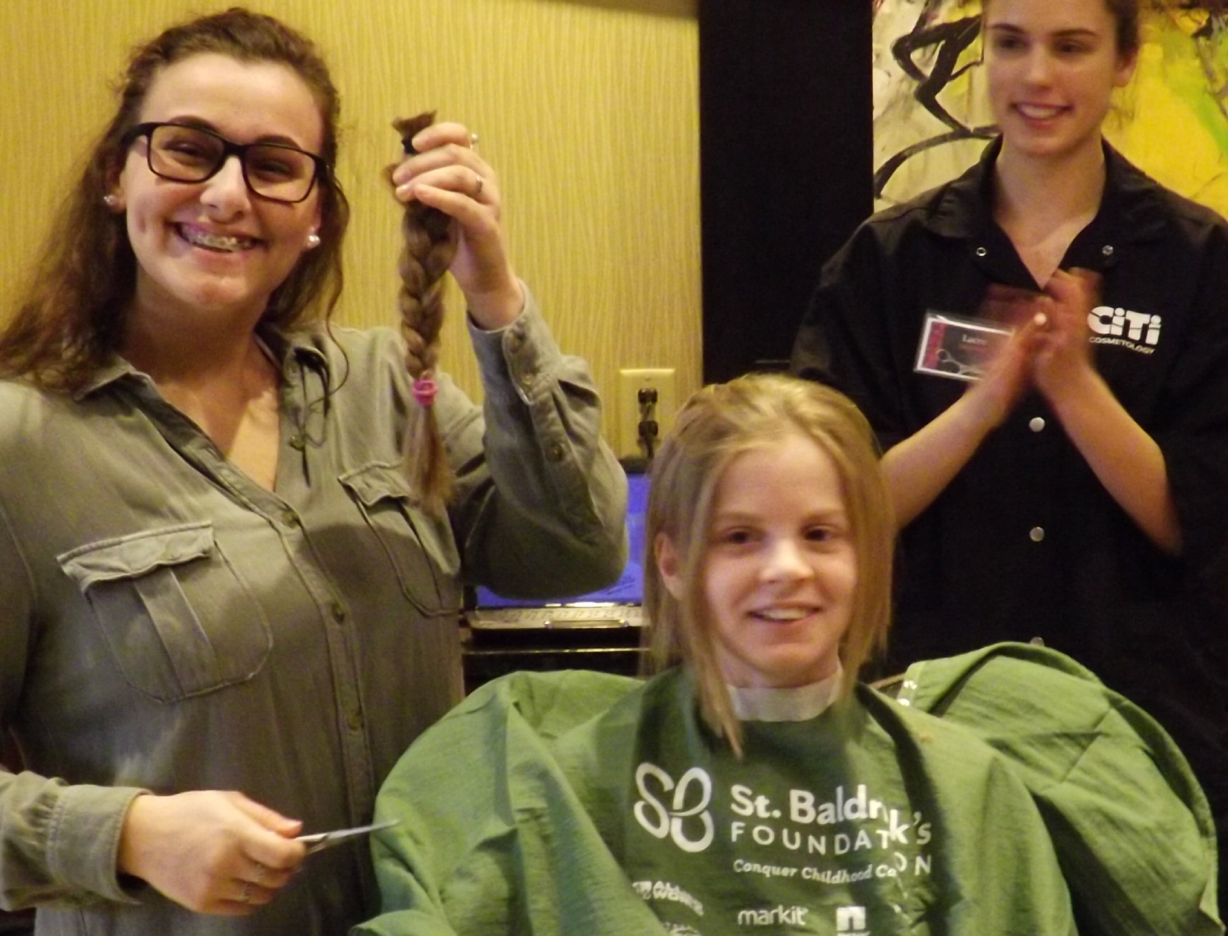 Meghan Parras’ 17-inch ponytail was the first to be snipped.