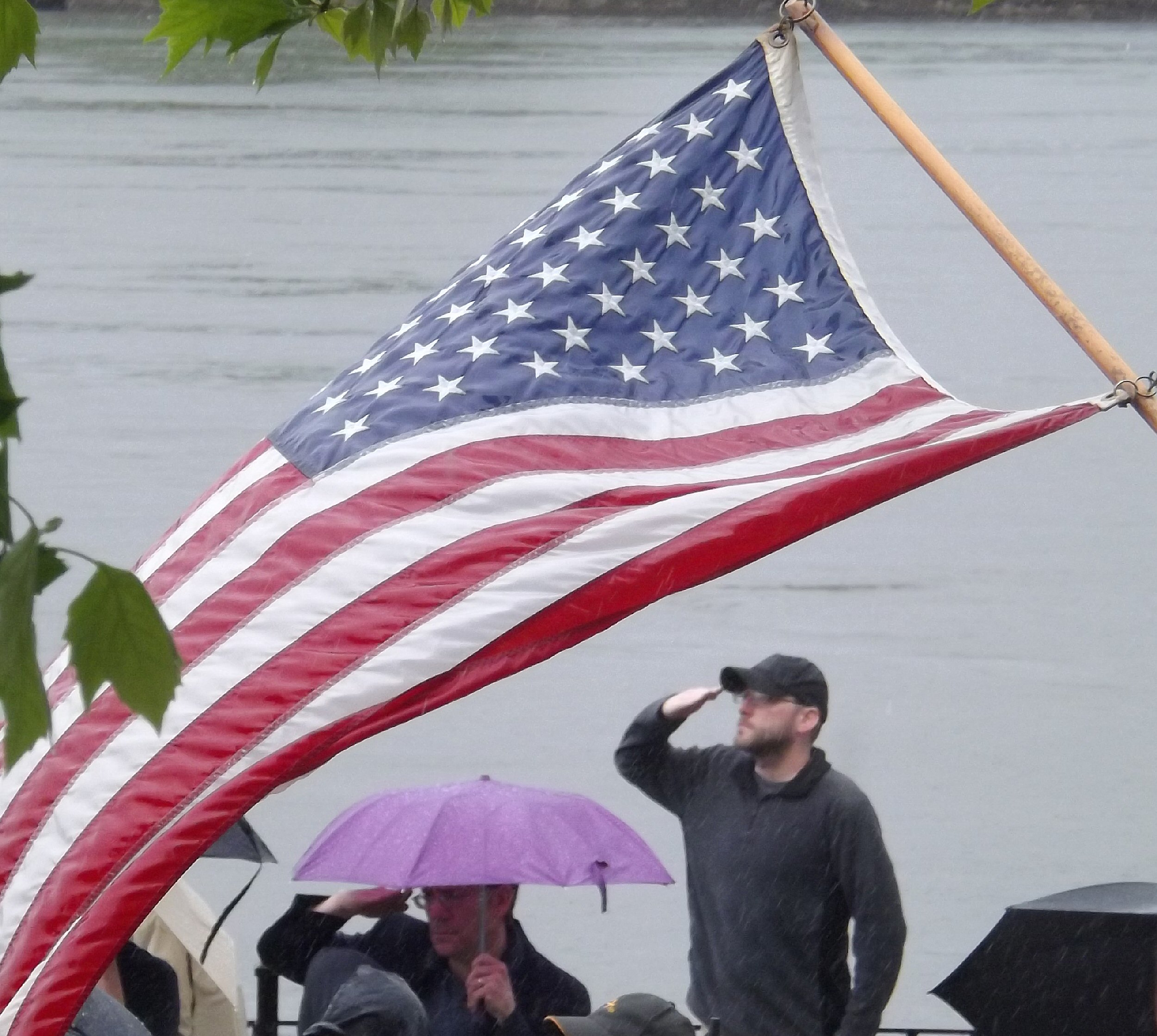 A man salutes during Monday’s ceremony at Veterans’ Park.