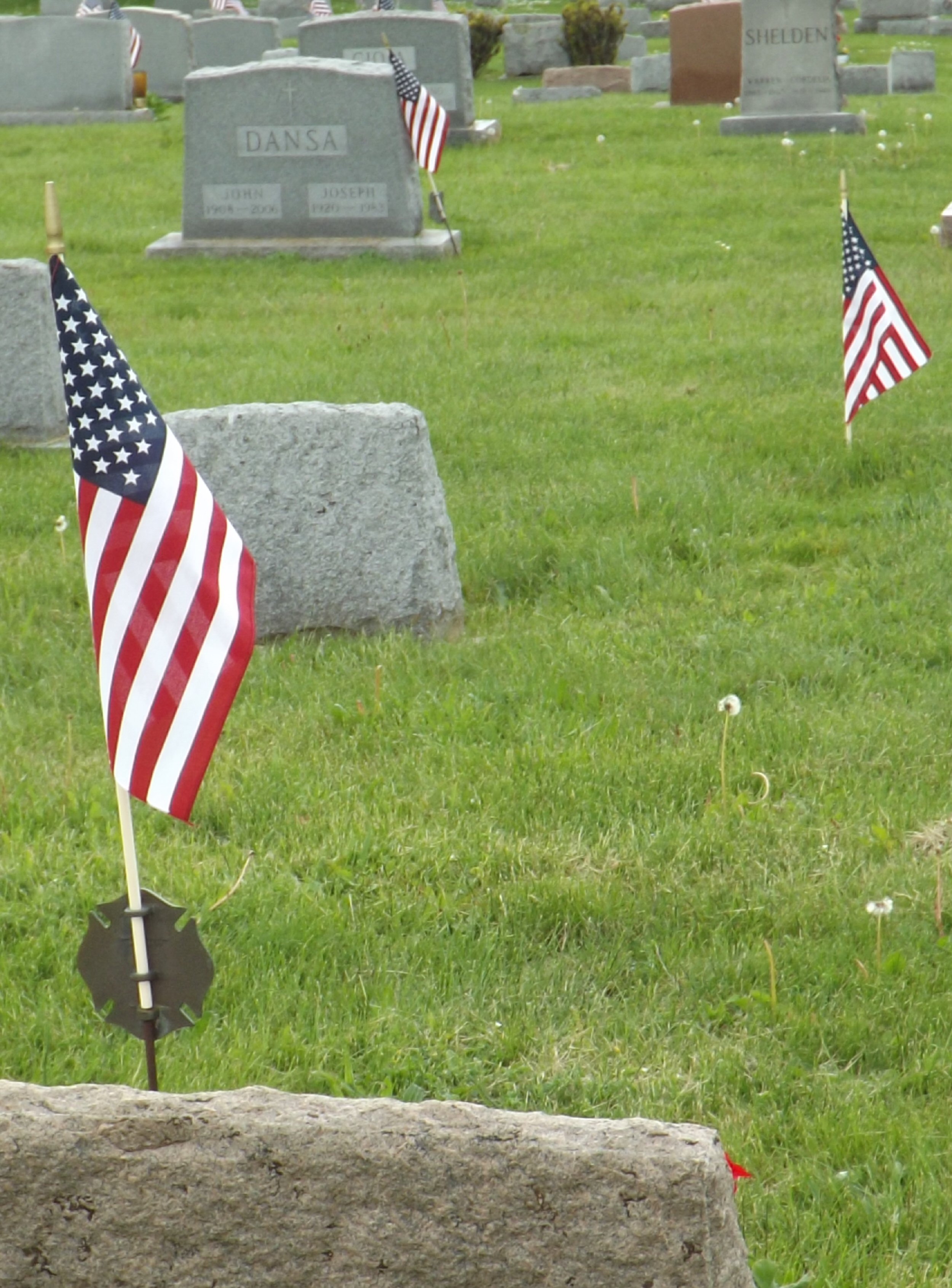 Flags adorn many graves in Oswego’s St. Peter’s Cemetery.