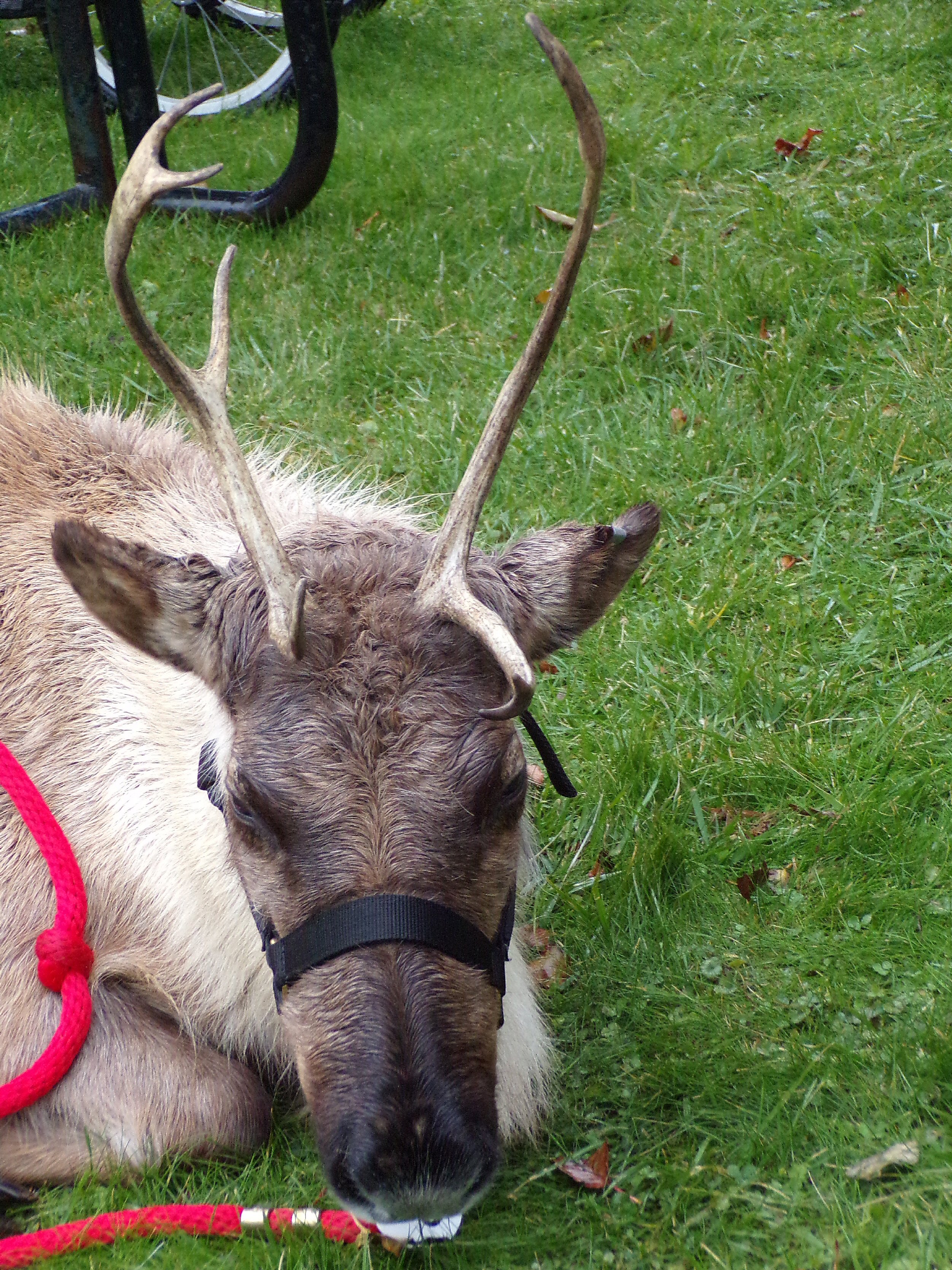 A tired reindeer takes a break from greeting the crowd Saturday afternoon.
