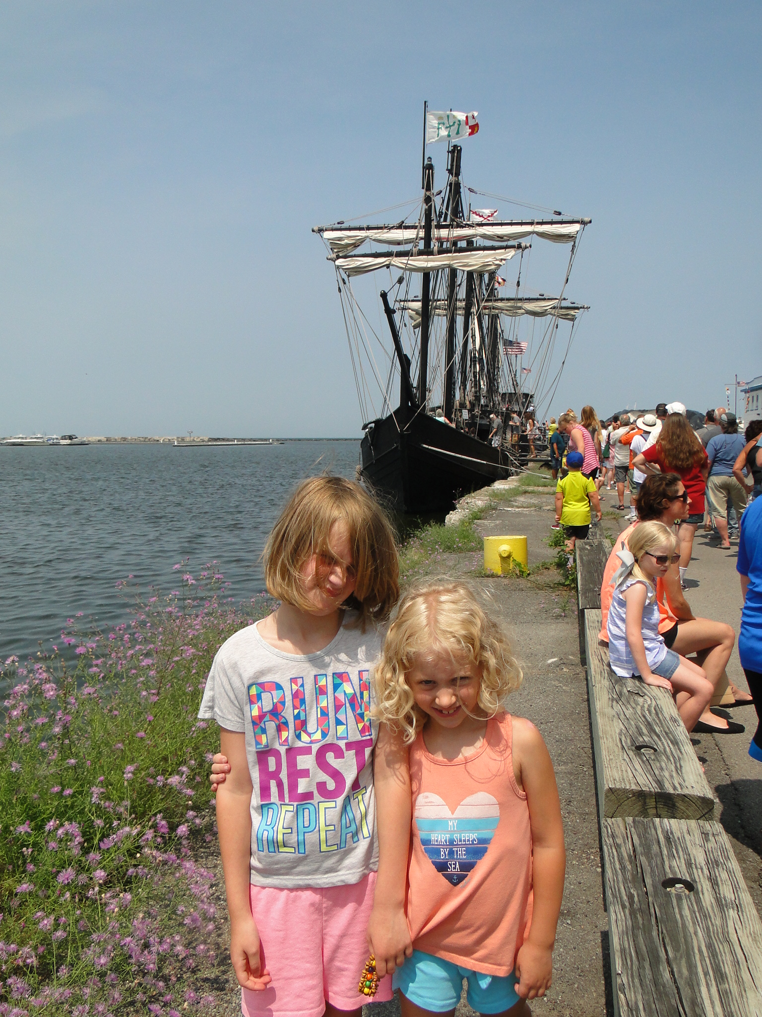 MolliGrace Ruggio and Charlianna Ruggio pose with the ship in the background