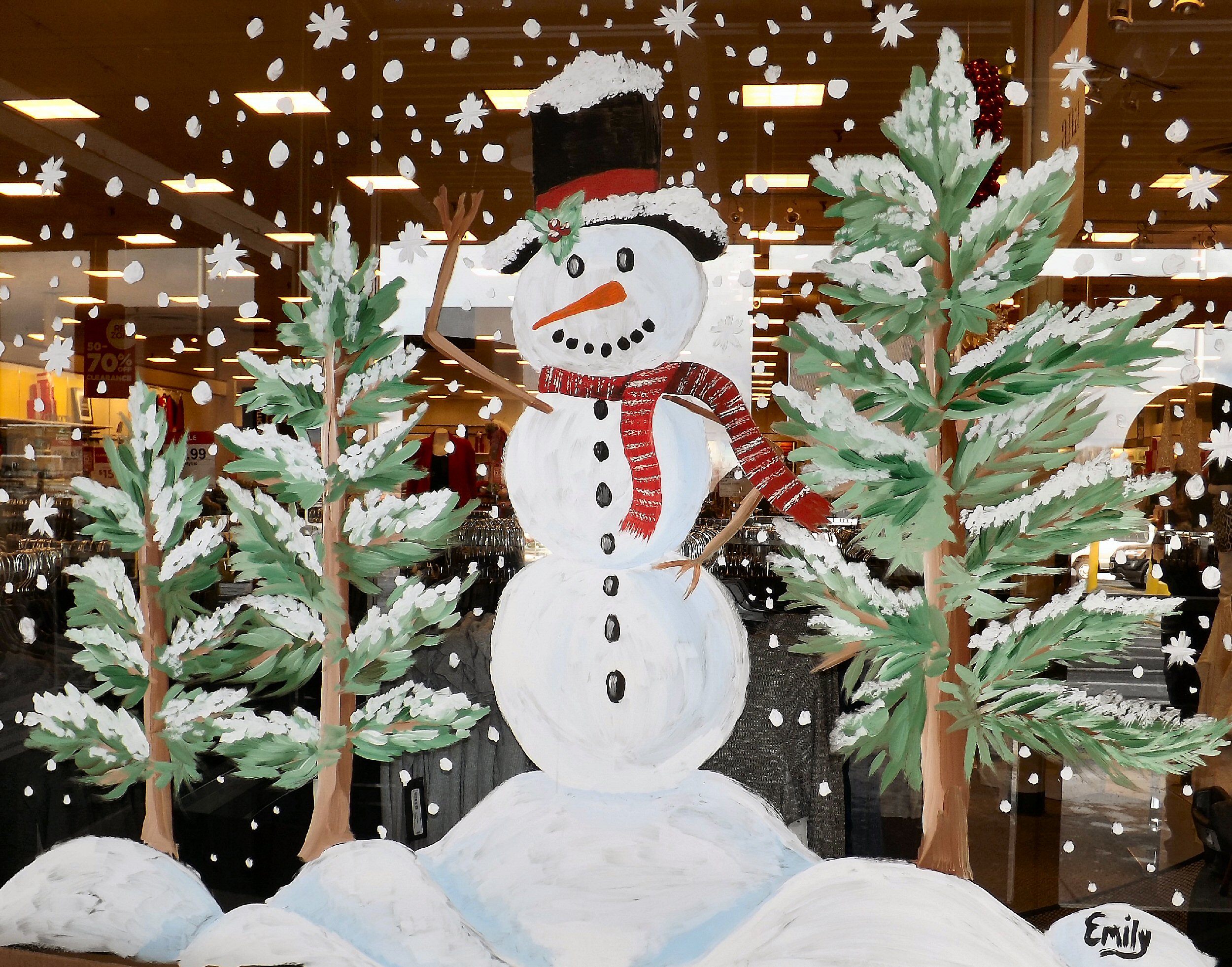 This snowman was painted just inside the entranceway.